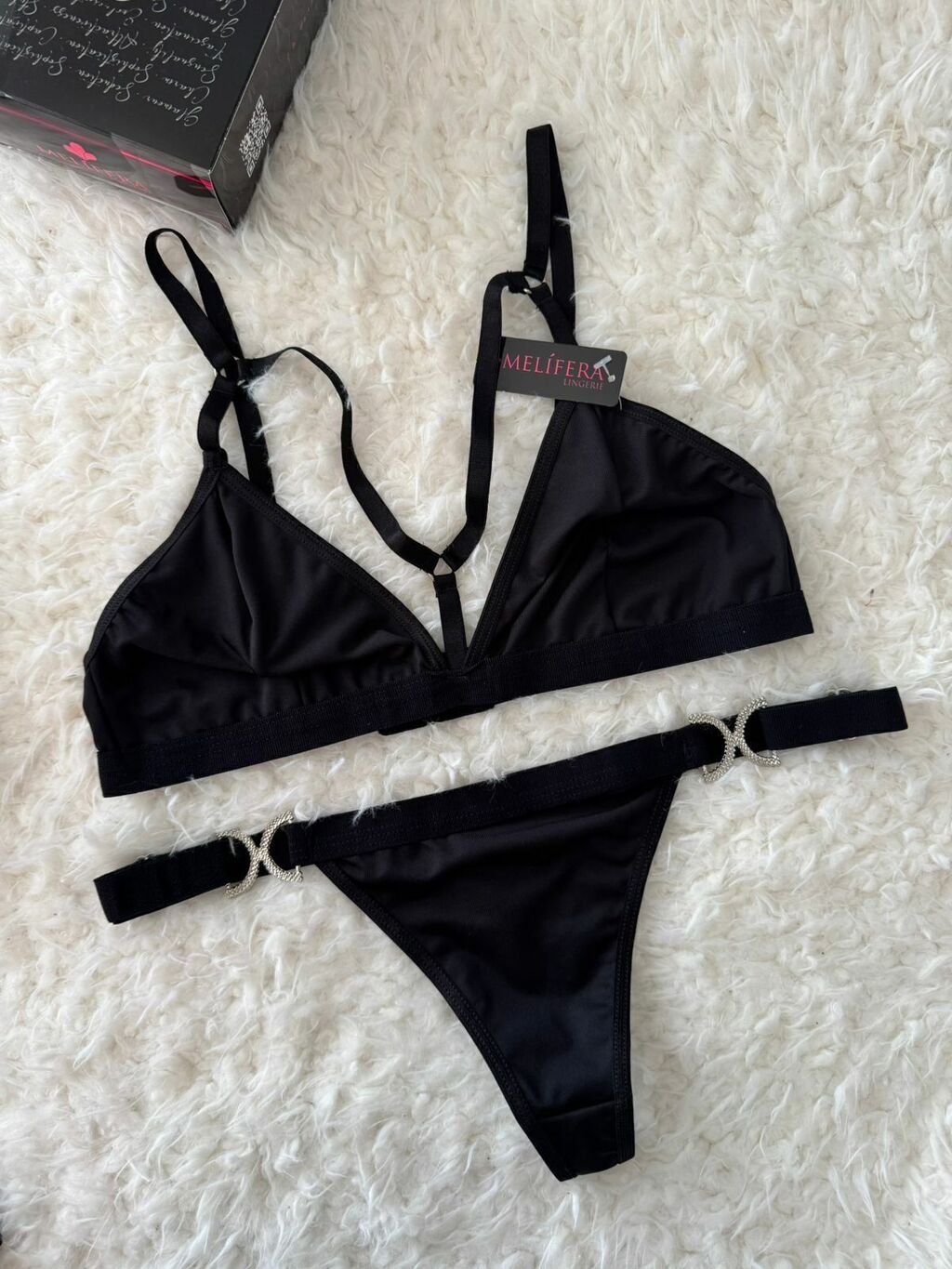 Descubre la elegancia y comodidad en este conjunto brallete confeccionado en algodón y lycra. Su diseño incluye tiras en el escote que le aportan un toque sensual, mientras que el colaless se complementa perfectamente con los accesorios incluidos.